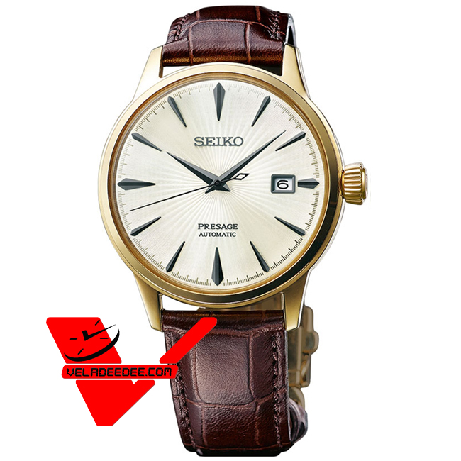 Seiko Presage Automatic Cocktail Time MADE IN JAPAN สี Gold/สีน้ำตาล สายหนังแท้ รุ่น SRPB44J1