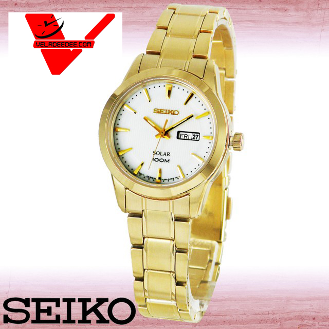 SEIKO Premier Diamond Sapphire Crystal นาฬิกาข้อมือผู้หญิง สายสแตนเลสสีทอง เพชรแท้ รุ่น SXB434P1