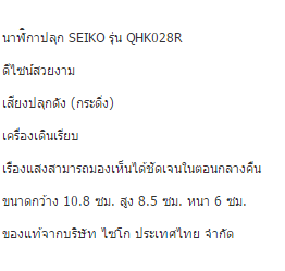 นาฬิกาปลุก SEIKO เครื่องเดินเรียบ ไม่มีเสียงรบกวน รุ่น QHK028