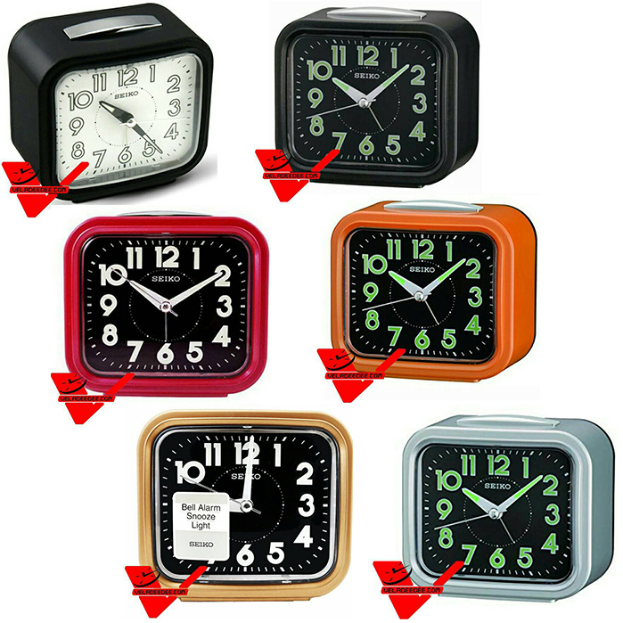 SEIKO นาฬิกาตั้งปลุก เครื่องเดินเรียบไร้เสียงรบกวน เสียงกระดิ่ง มีพรายน้ำ รุ่น QHK023J (มี 6 สีให้เลือก)
